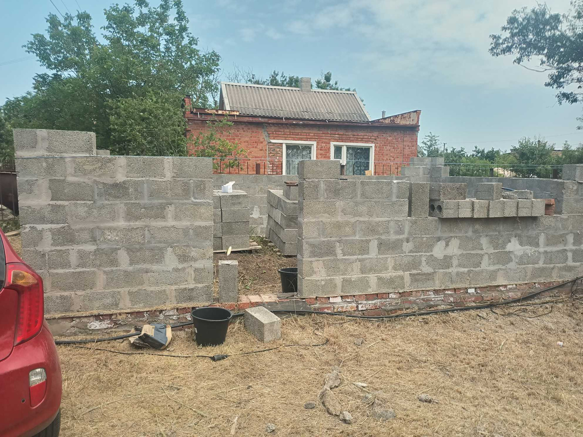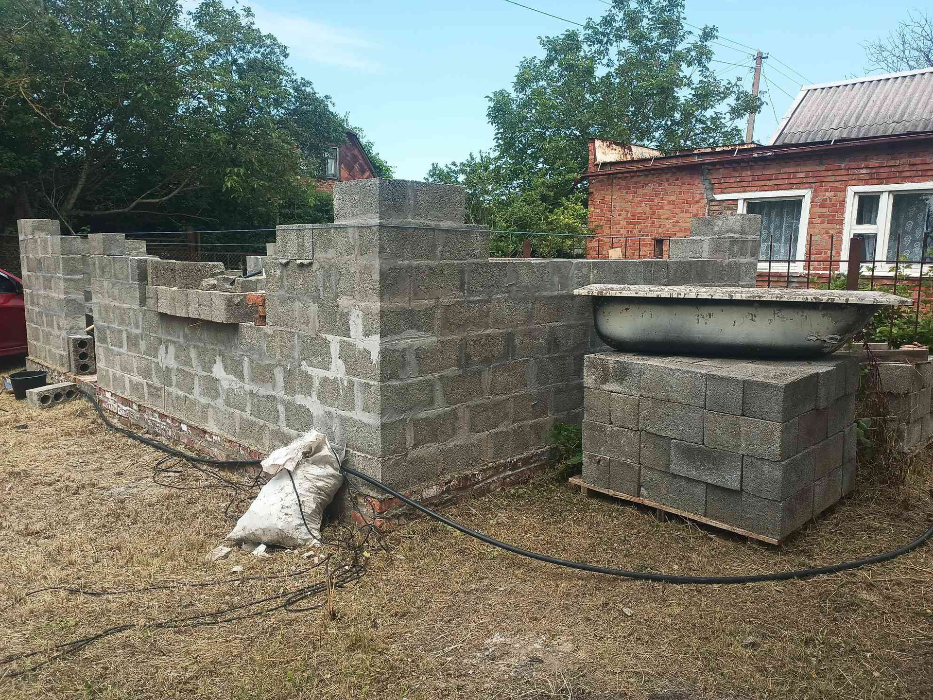Фундамент ленточный. Стена шлакоблок.
