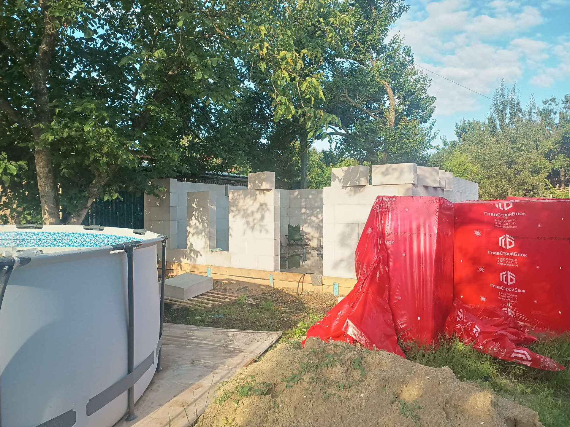 Фундамент плита. Стена газоблок.