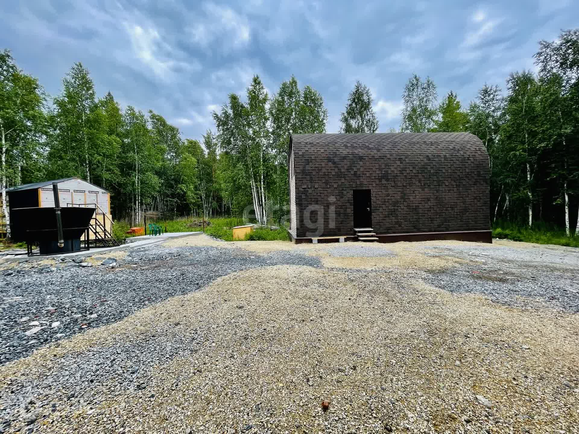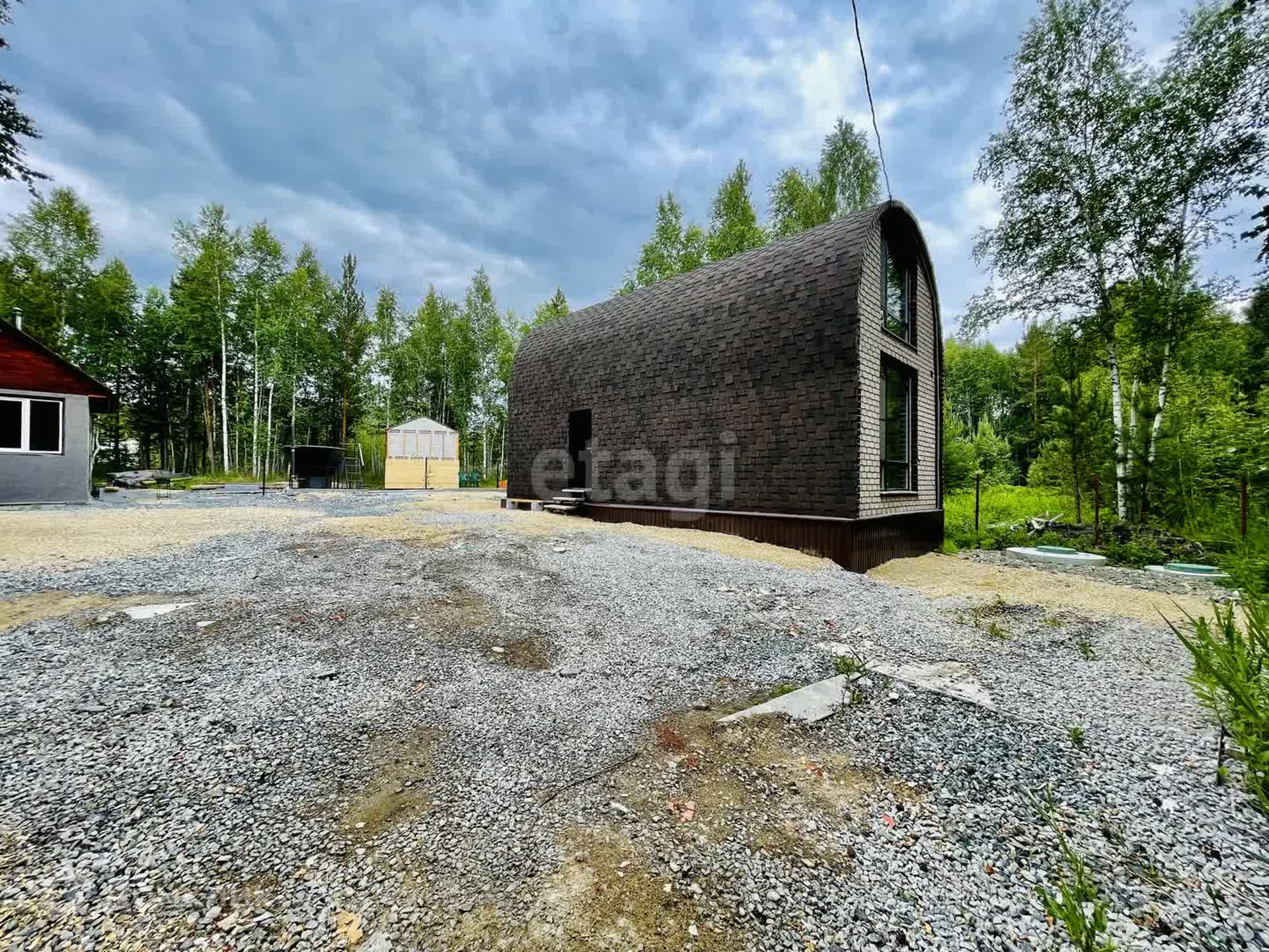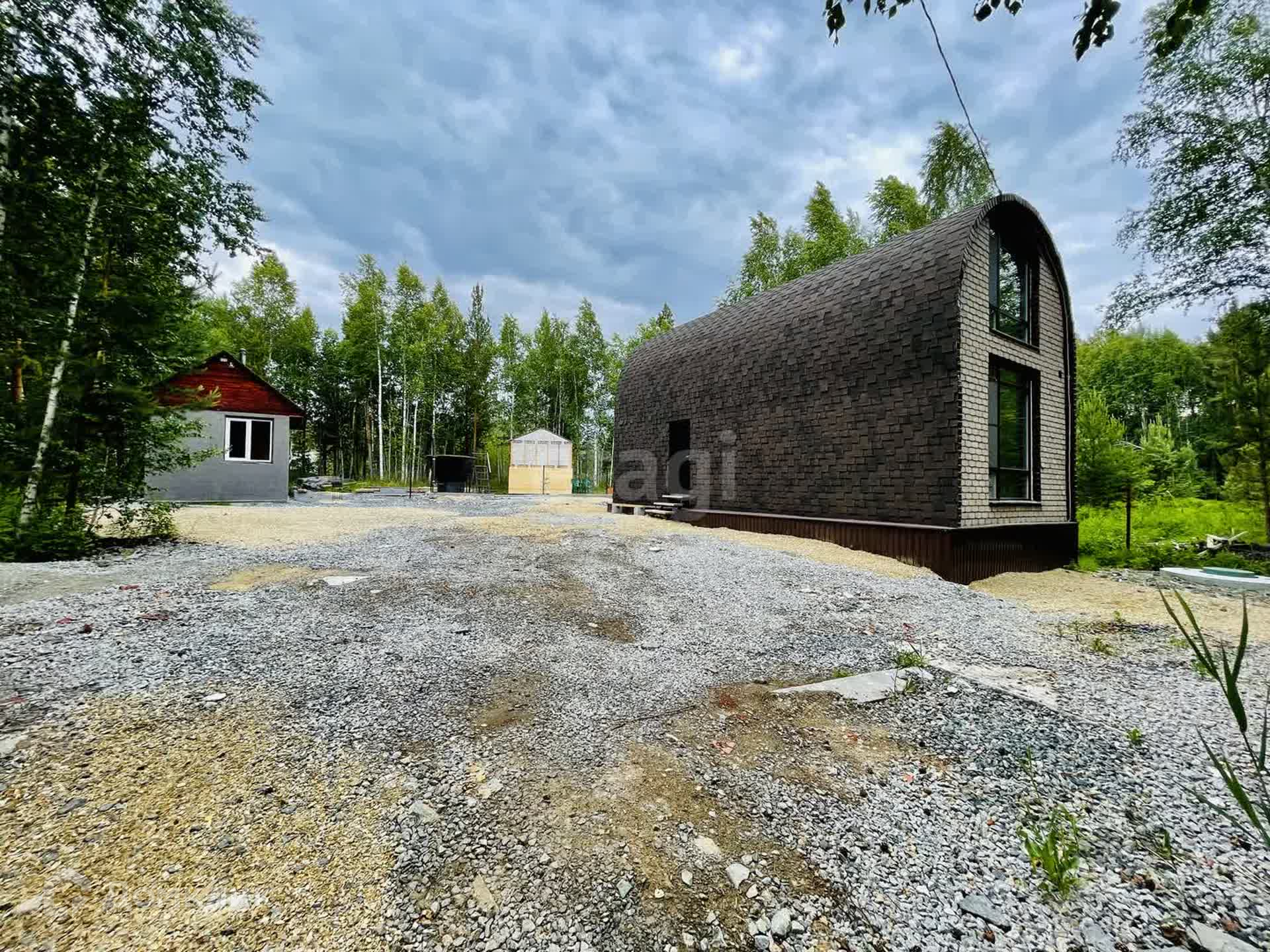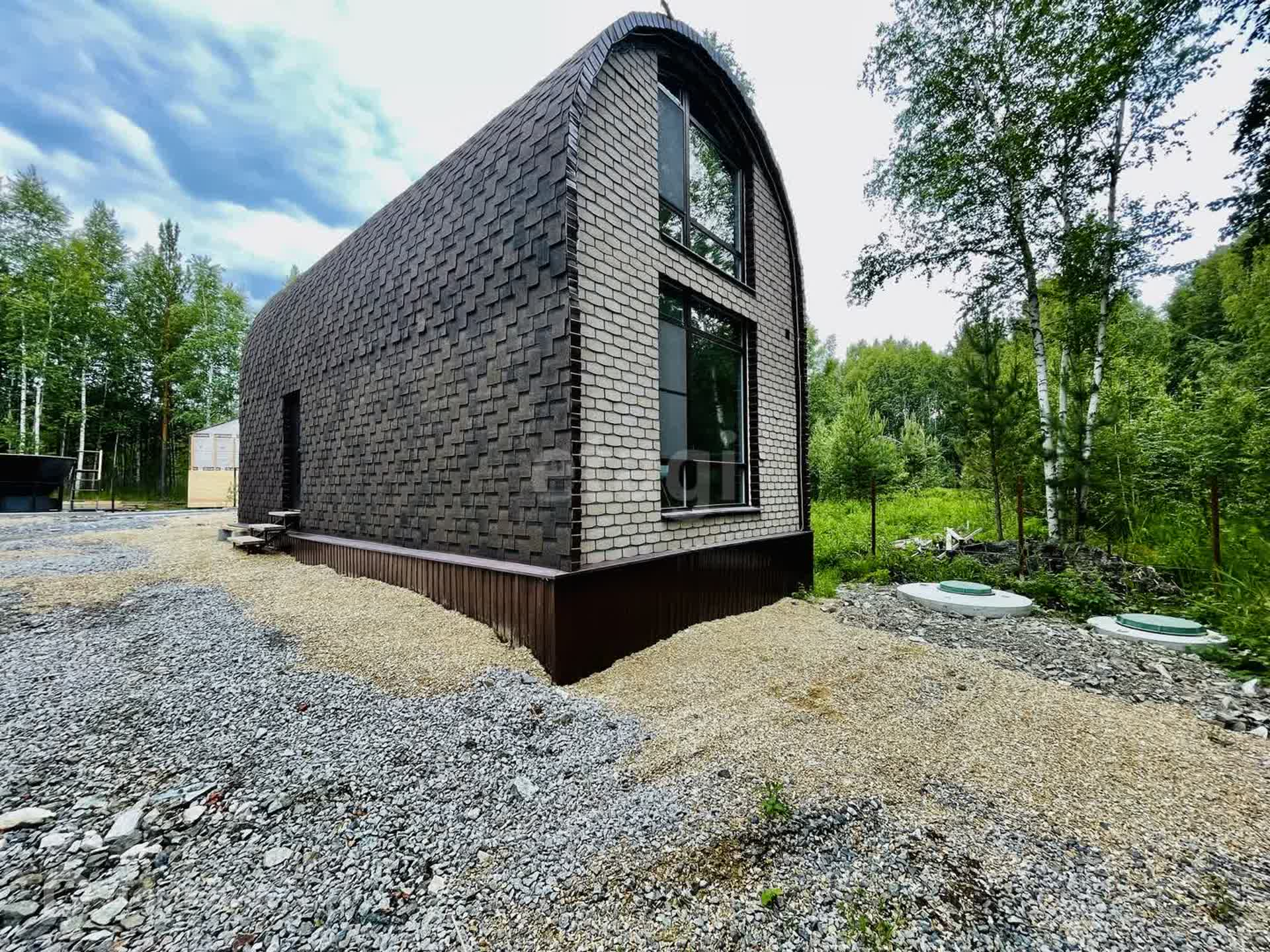 Дом полностью обшит гибкой черепицей.