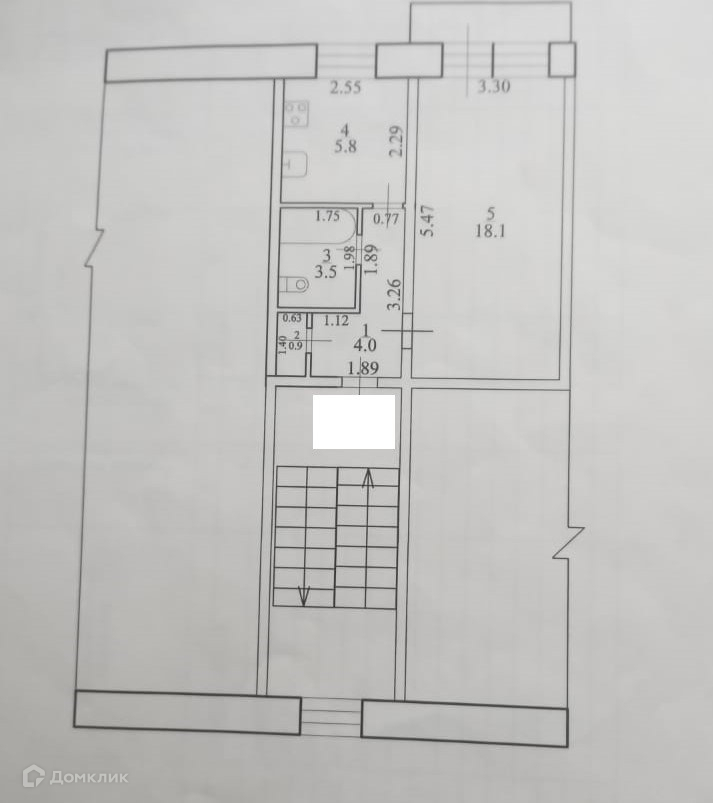Квартира расположена на 5 этаже 5 этажного кирпичного дома.