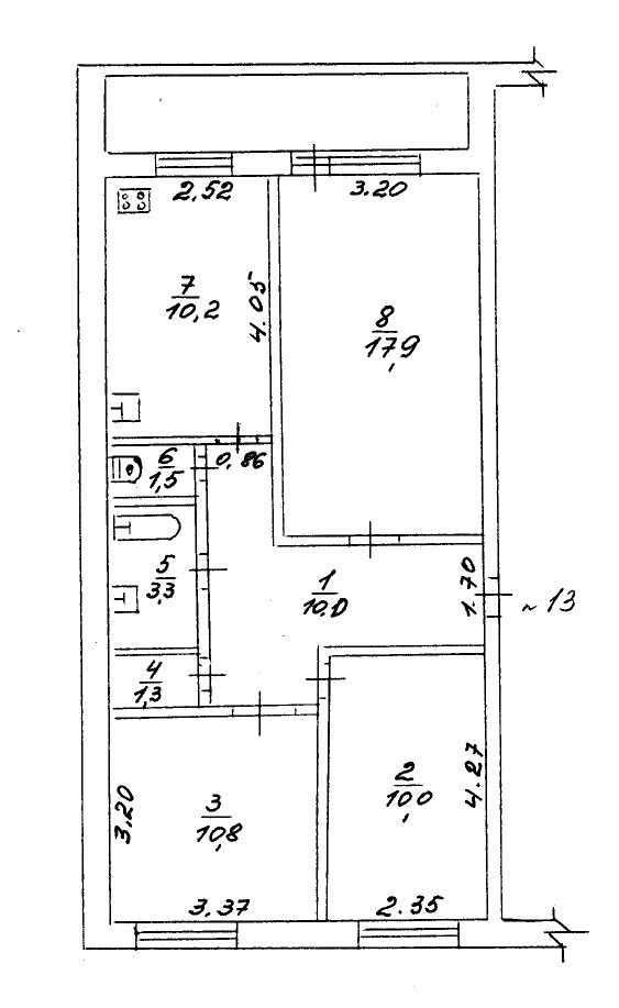 Площадь кухни 10.2 м2