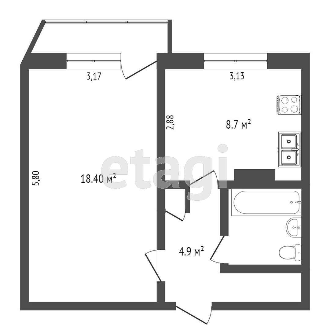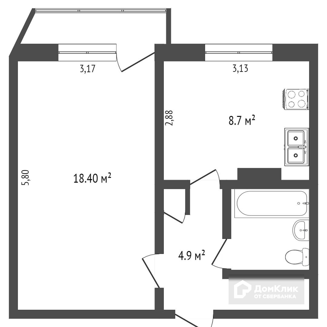 Жилая площадь 18.4 м2
