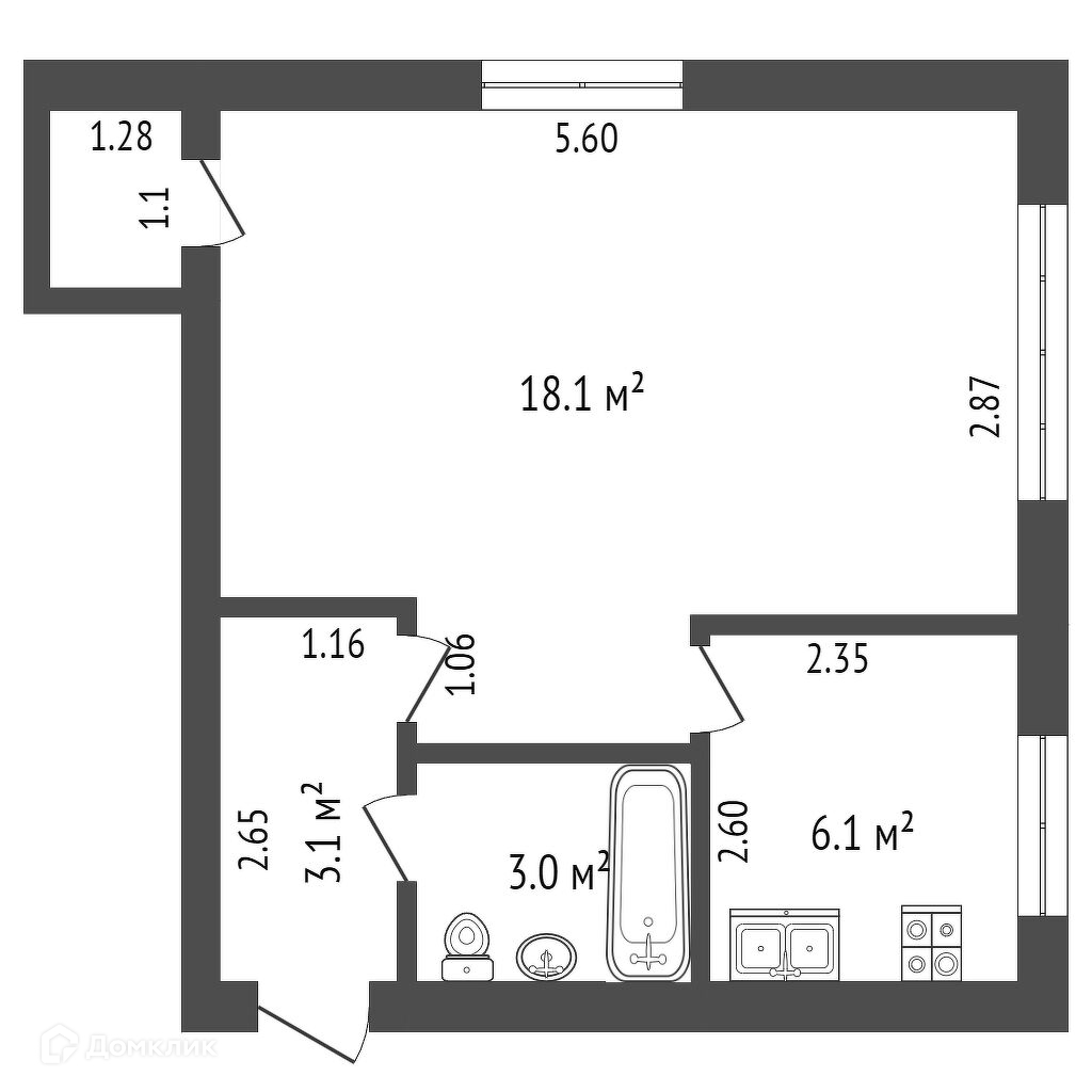 Бюджетная однокомнатная квартира для вашей семьи.