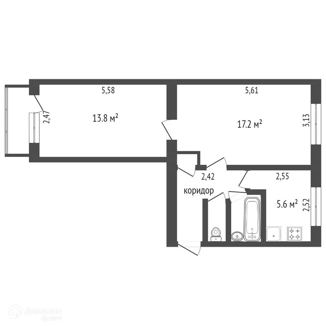 Общая площадь 46 м2