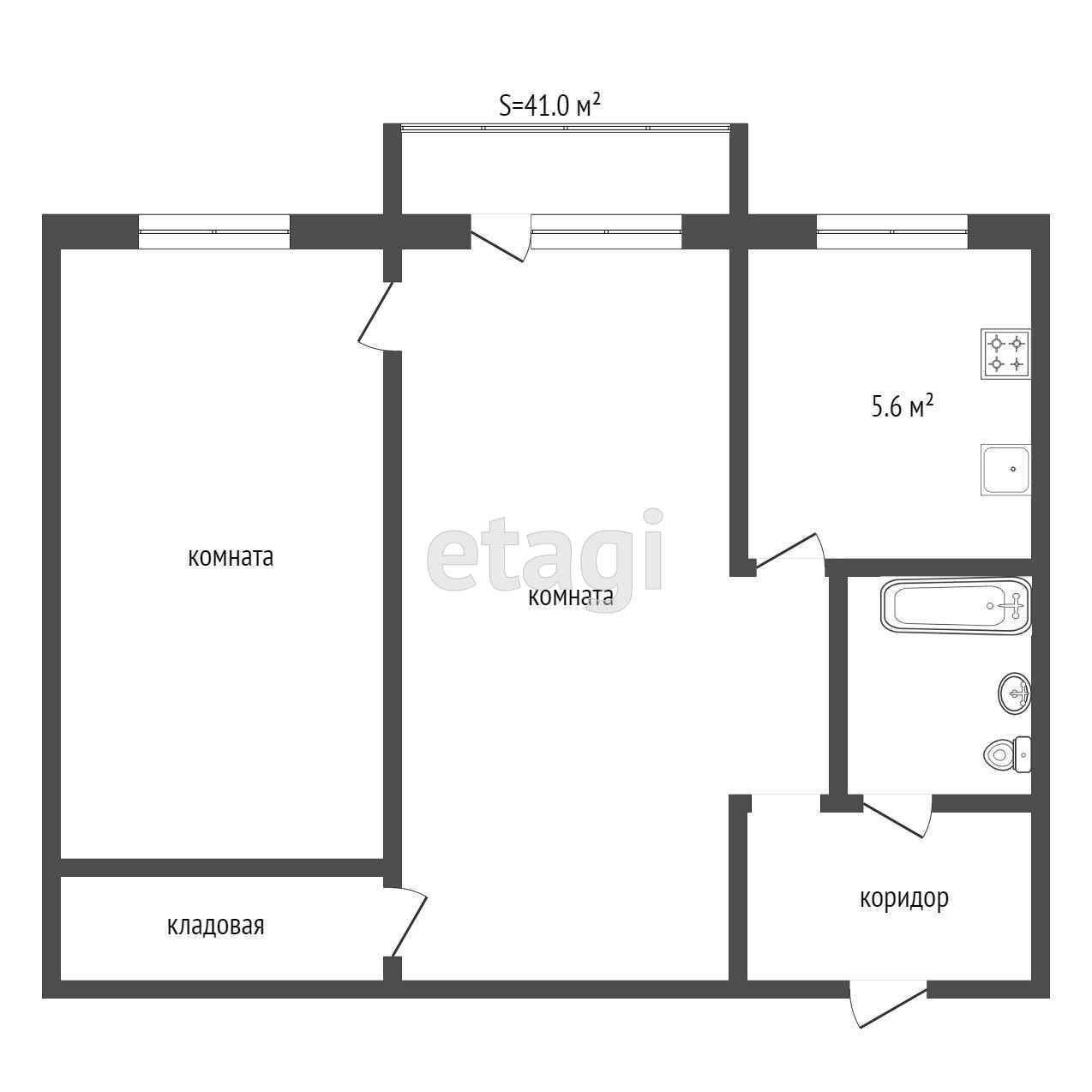 Общая площадь 41 м2