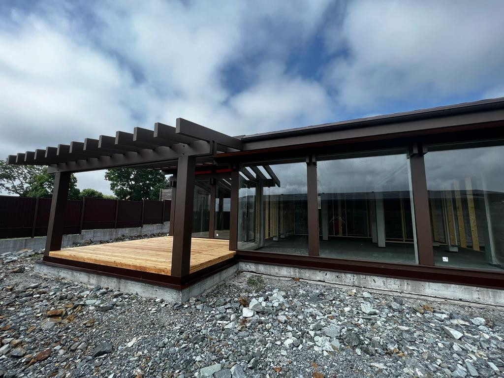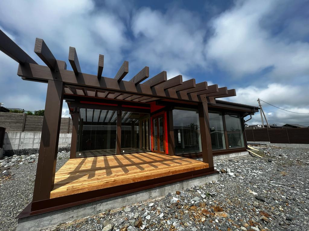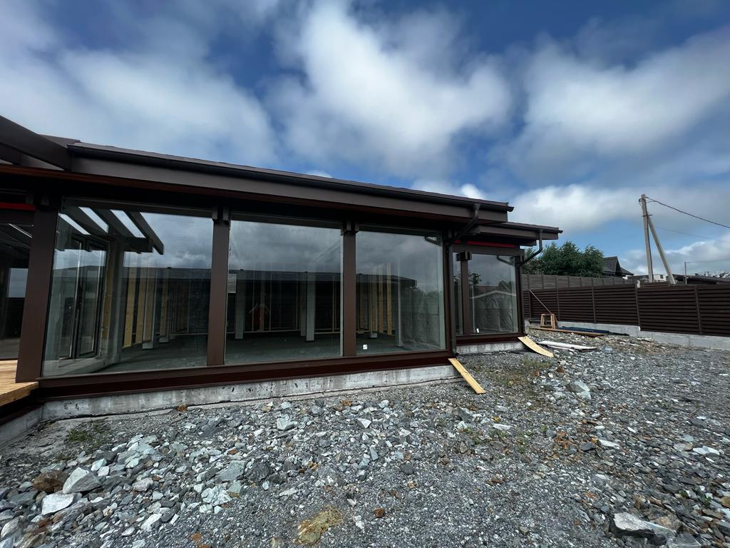 Главная особенность дома - применение в качестве большинства стен стеклопакетов в пол от концерна AGC, марки Stopray Neo. Это мультифункциональное энергосберегающее стекло, которое защищает от излишней солнечной жары летом и сохраняет домашнее тепло в зимний период.