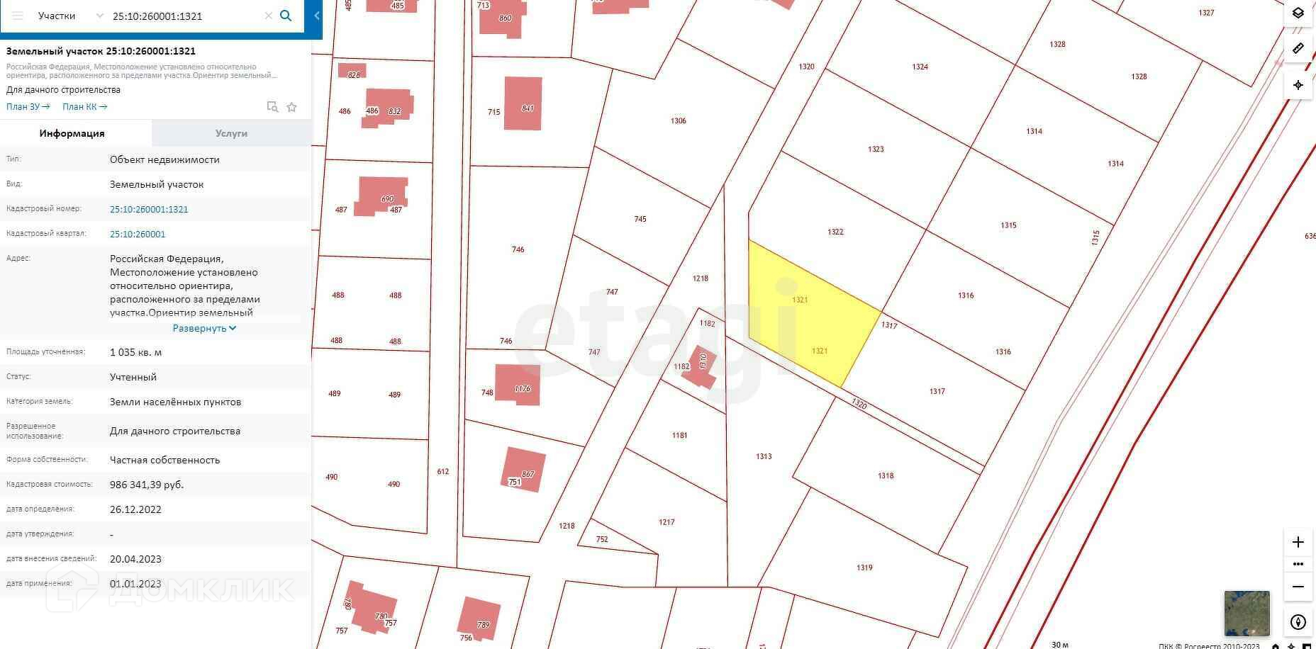 Компания Этажи-Владивосток предлагает к продаже участок площадью: 10,35 соток, Собственность, назначение: для дачного строительства. Зона Ж1