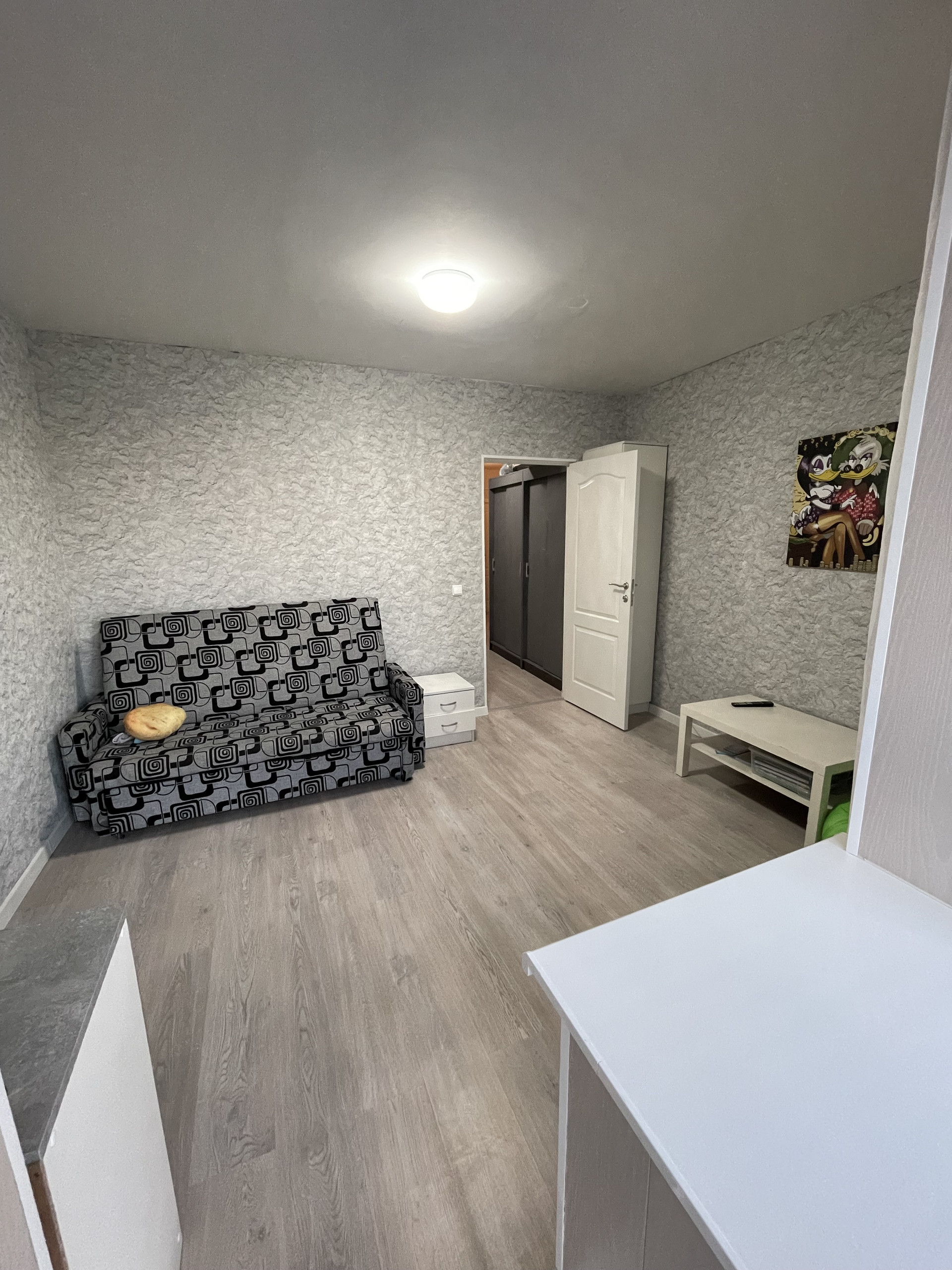 Кухня S= 11,6 м² Квартира двухсторонняя, окна во двор и на ТК "Green Park", в квартире сделан ремонт, на кухне остается кухонный гарнитур, холодильник. В коридоре шкафы, в комнате диван, комод. В одной из комнат балкон соединен с комнатой, балконная зона утеплена, сделан качественный ремонт. В шаговой доступности школа и детский сад, магазины и остановка общественного транспорта. Прямая продажа, документы готовы! Порядок пользования комнатами определен, лицевые счета разделены.Второй собственник в квартире не проживает. Реальным покупателям-разумный торг!
