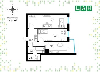 Общая площадь: 62.3 м2