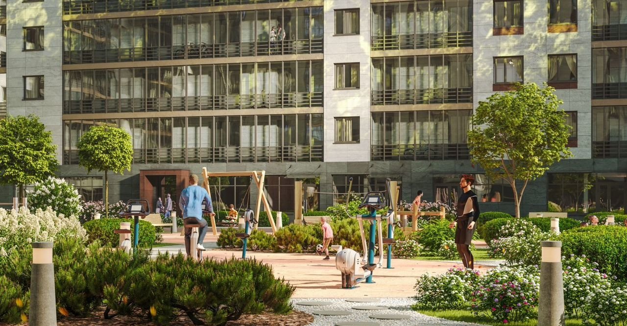 На огороженной охраняемой территории под видеонаблюдением разместится собственный парк площадью 4,2 Га с беседками и зонами отдыха, универсальными спортивными и современными детскими площадками. На первых этажах дома планируются коммерческие помещения, в которых будут все необходимые товары и услуги.