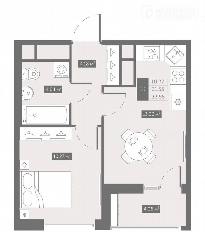 Общая площадь 33.6 м2
