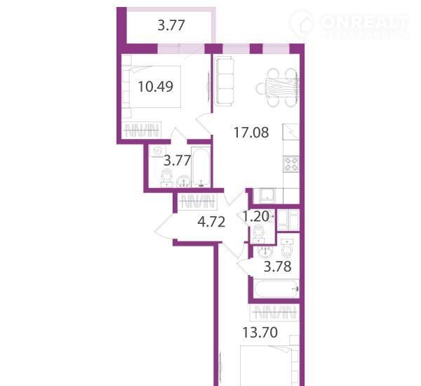 Санузел 1 совмещенный и 1 раздельный
