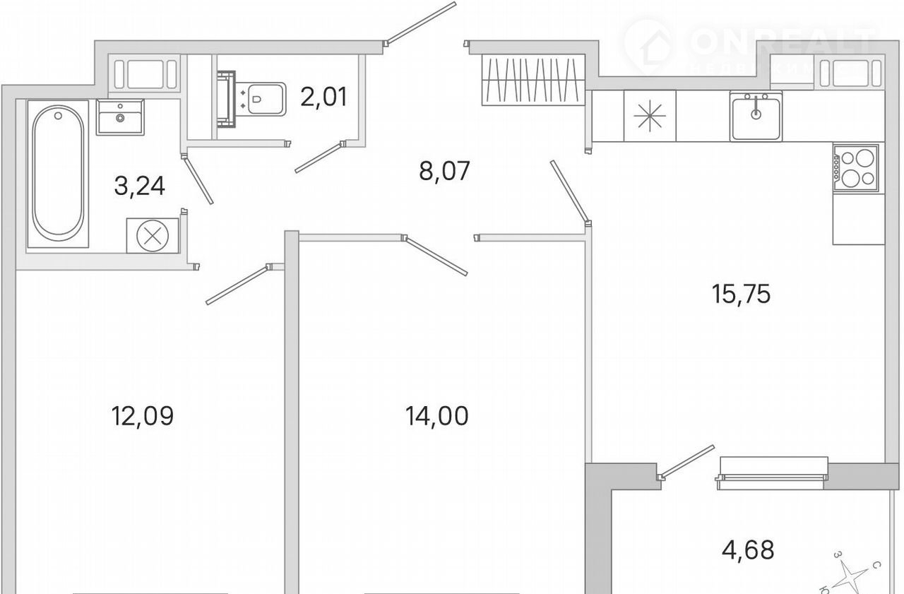 Общая площадь 57.5 м2