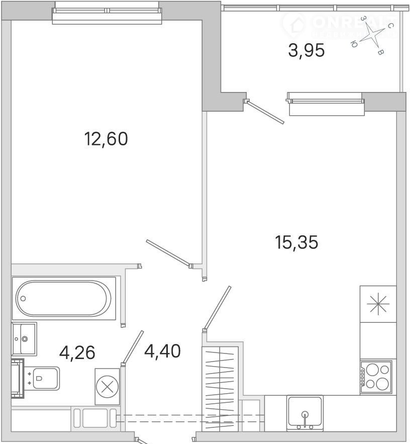 Общая площадь 38.6 м2