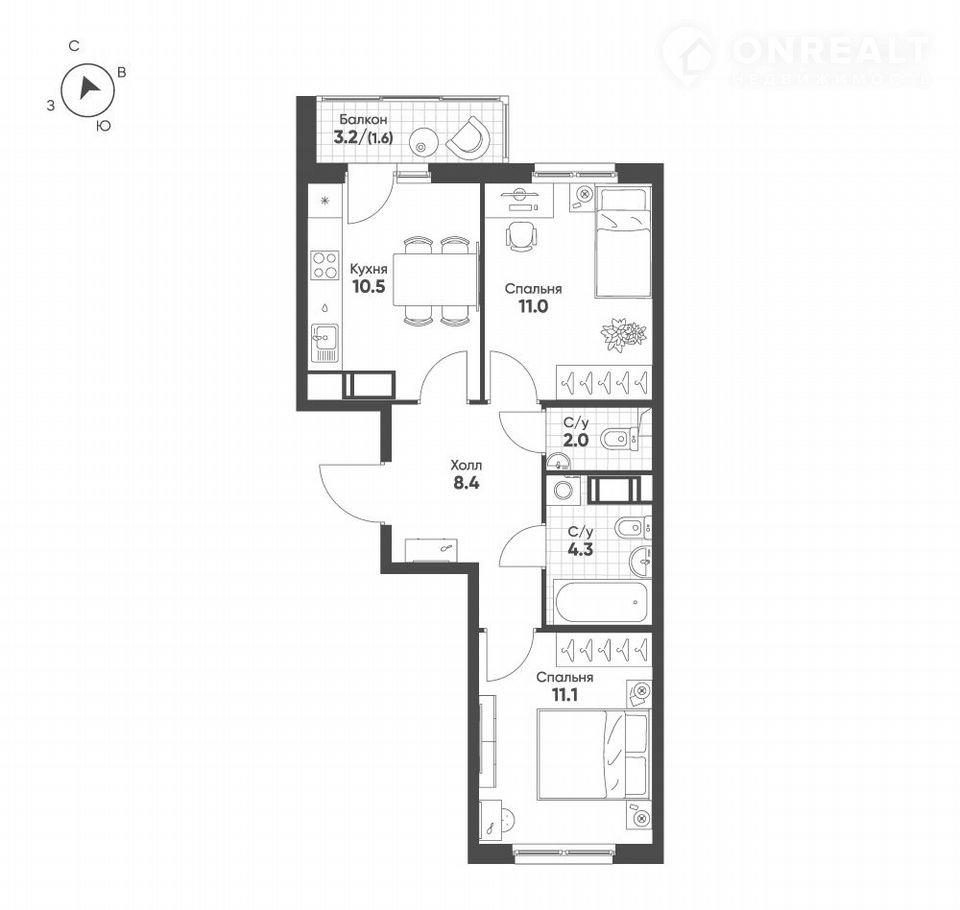 Количество комнат 2