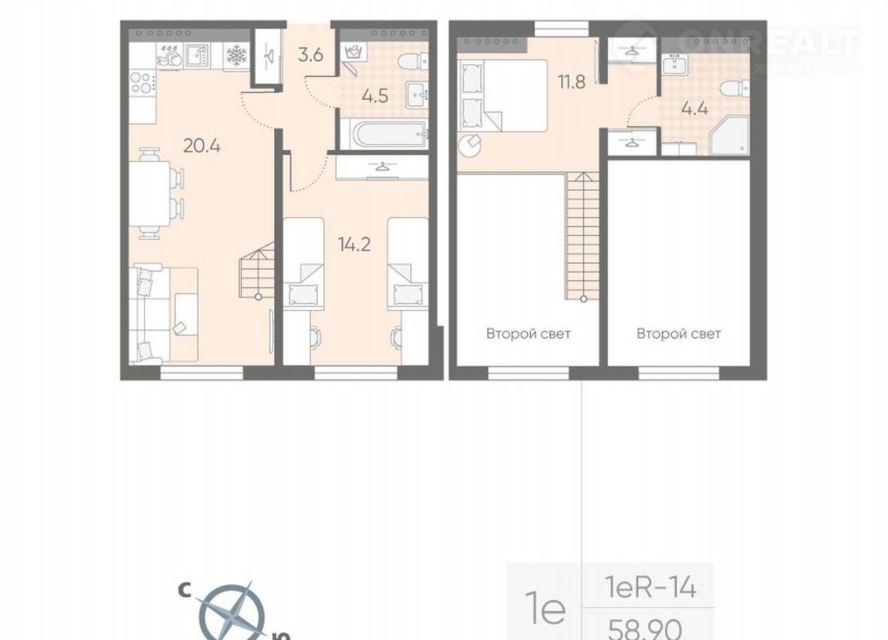 Общая площадь 58.9 м2