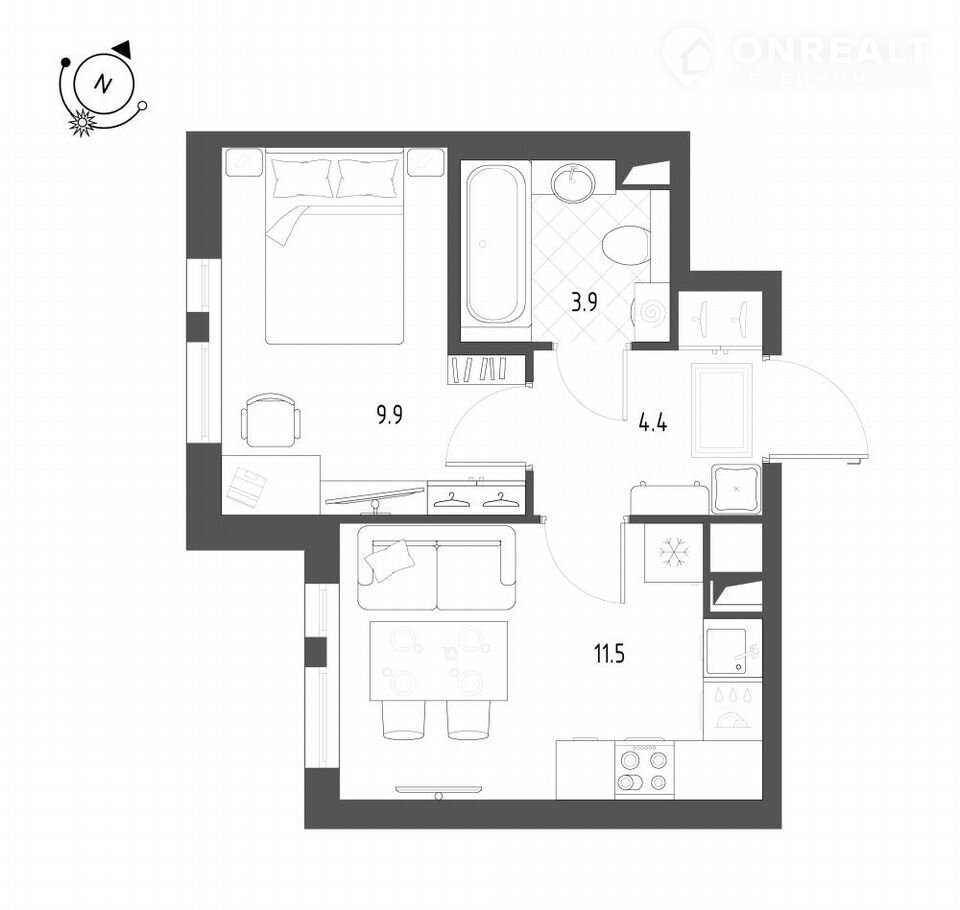 Жилая площадь 9.9 м2