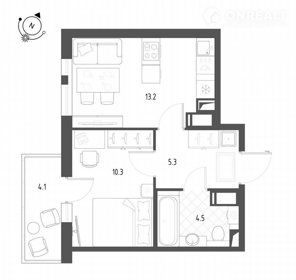 Жилая площадь 10.3 м2