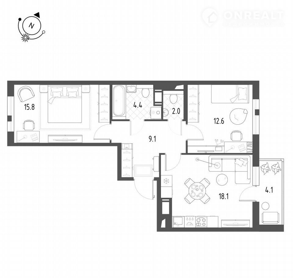 Площадь кухни 18.1 м2