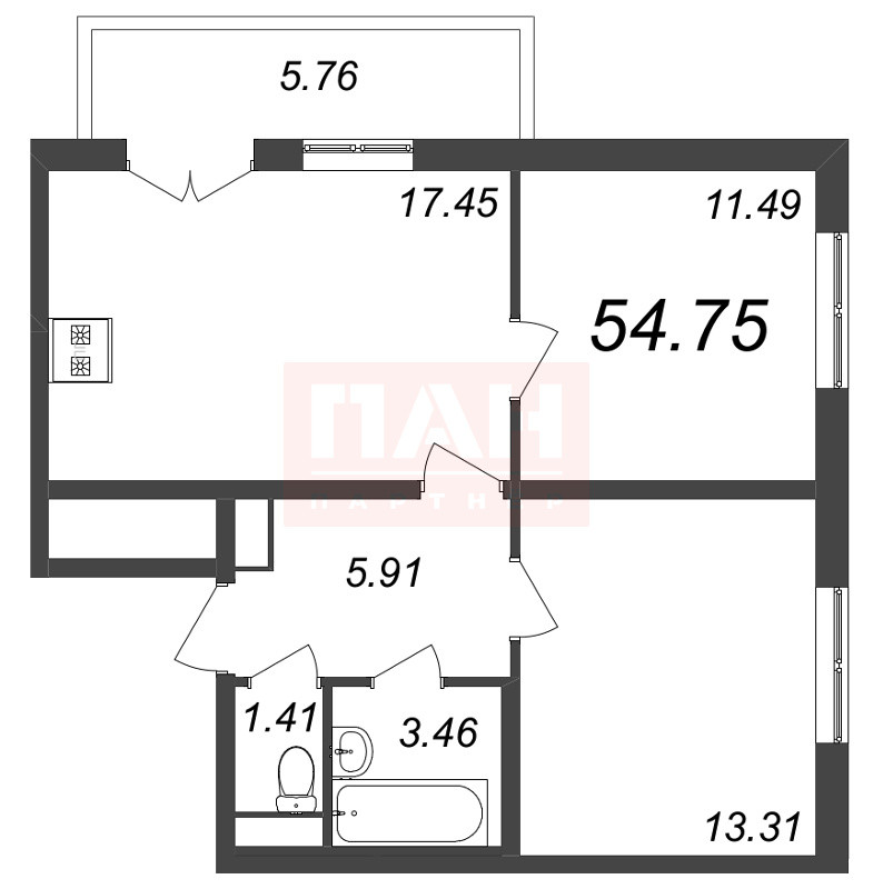 Общая площадь 54 м2