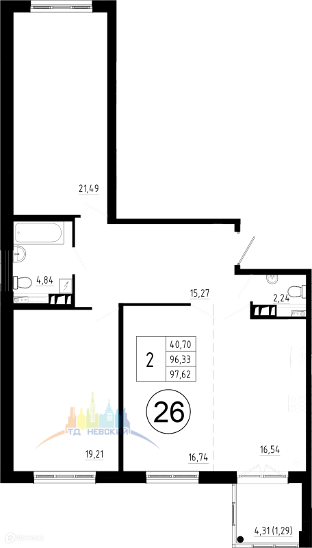 Общая площадь 96.6 м2