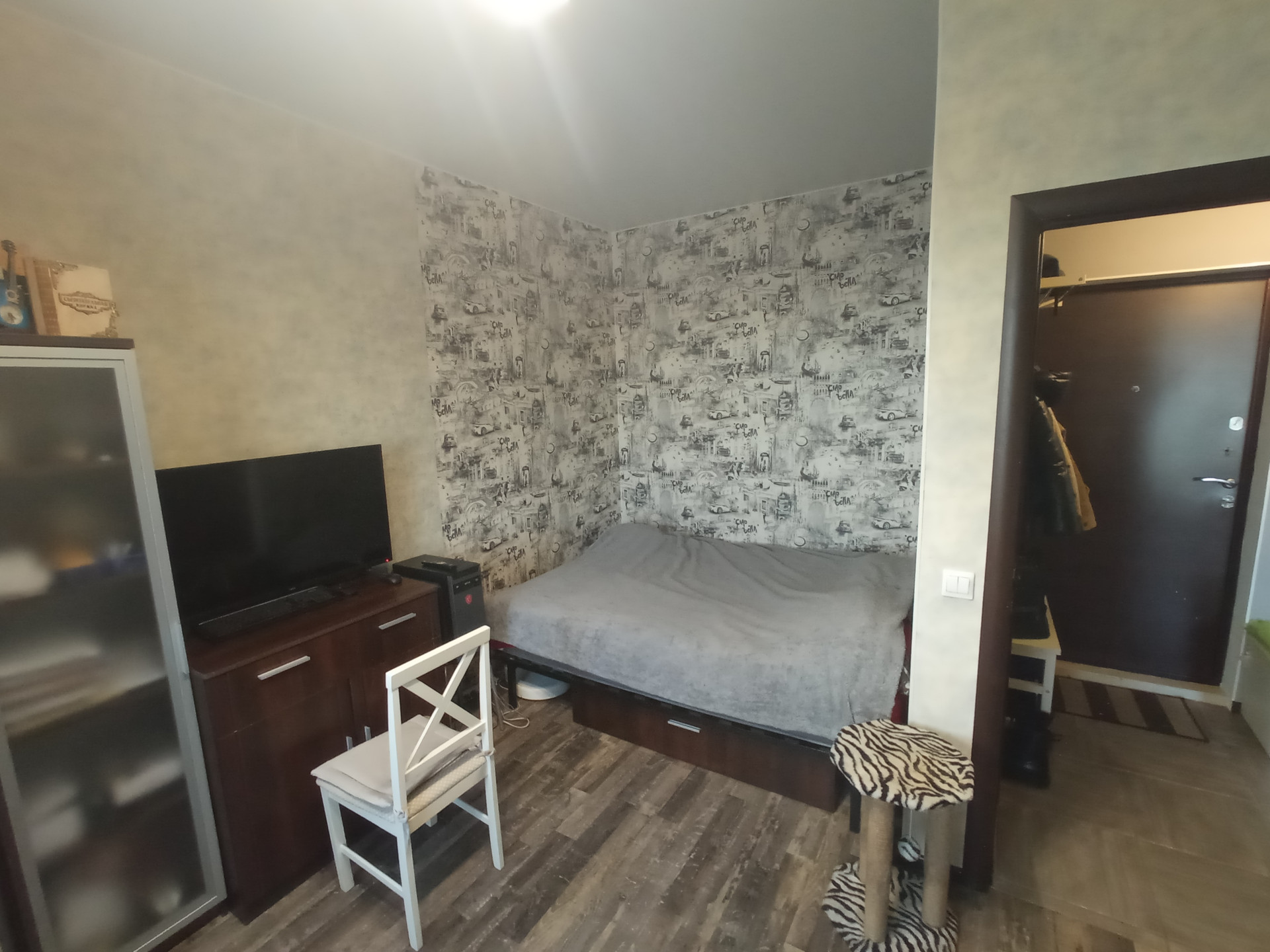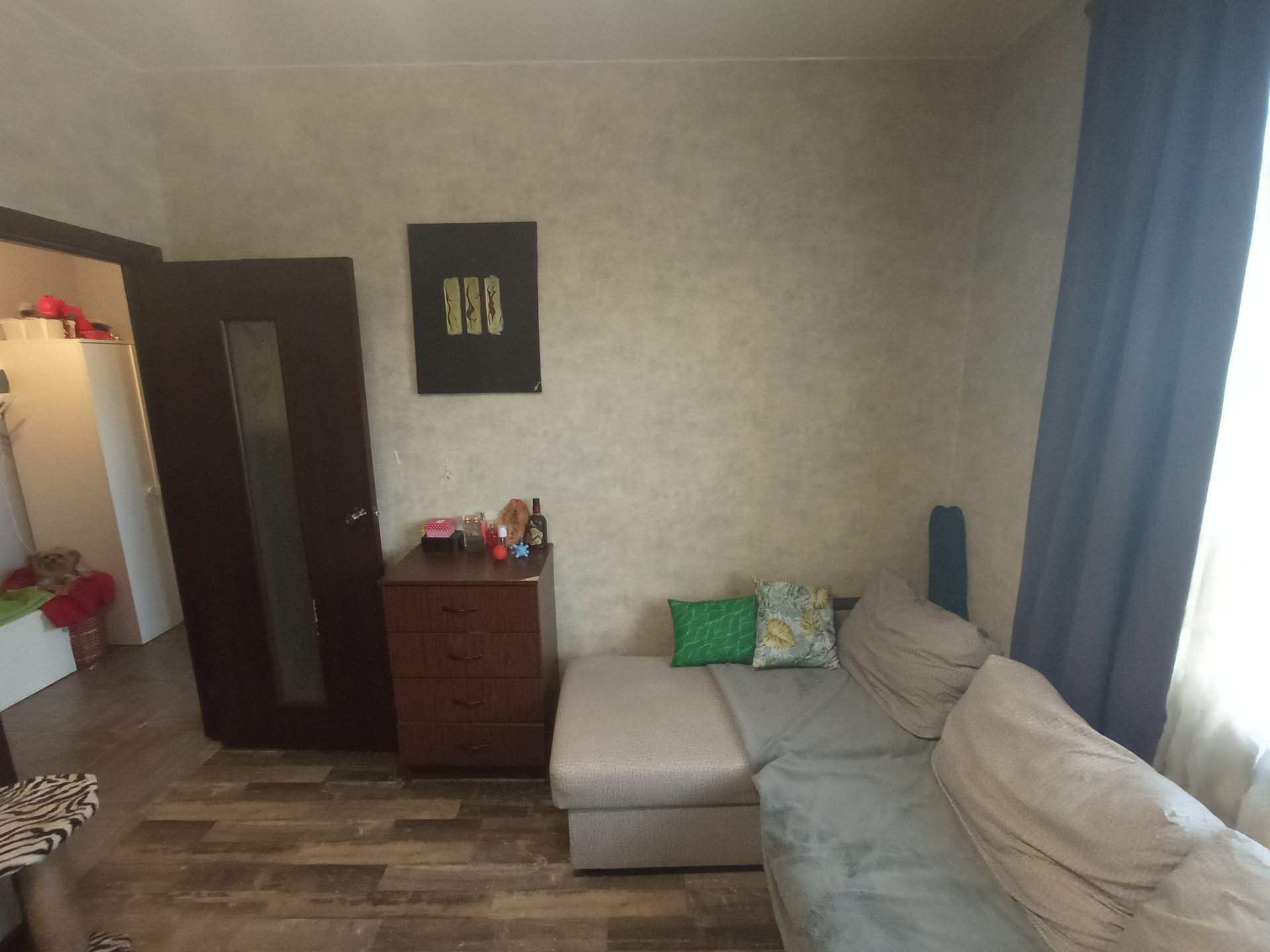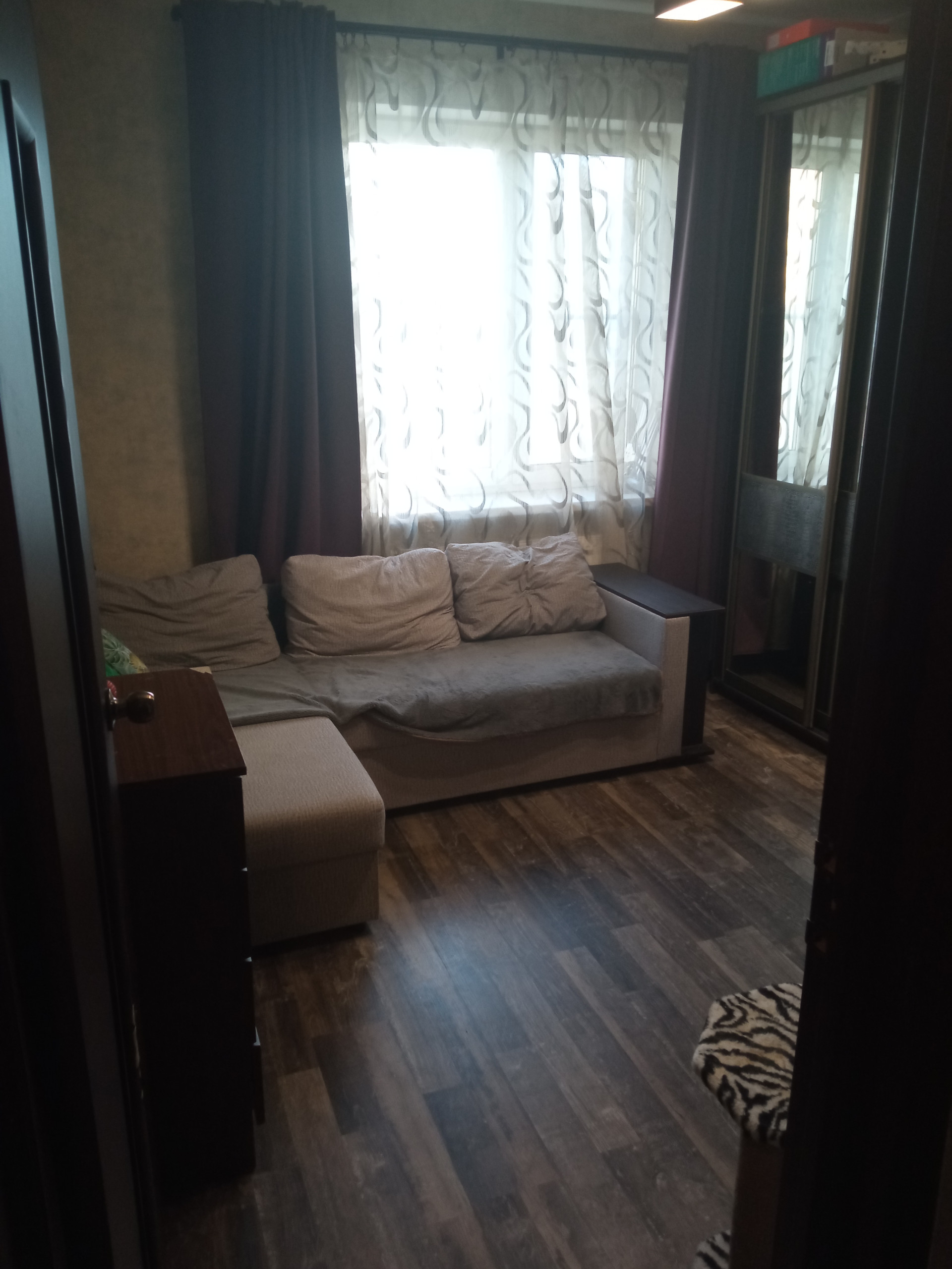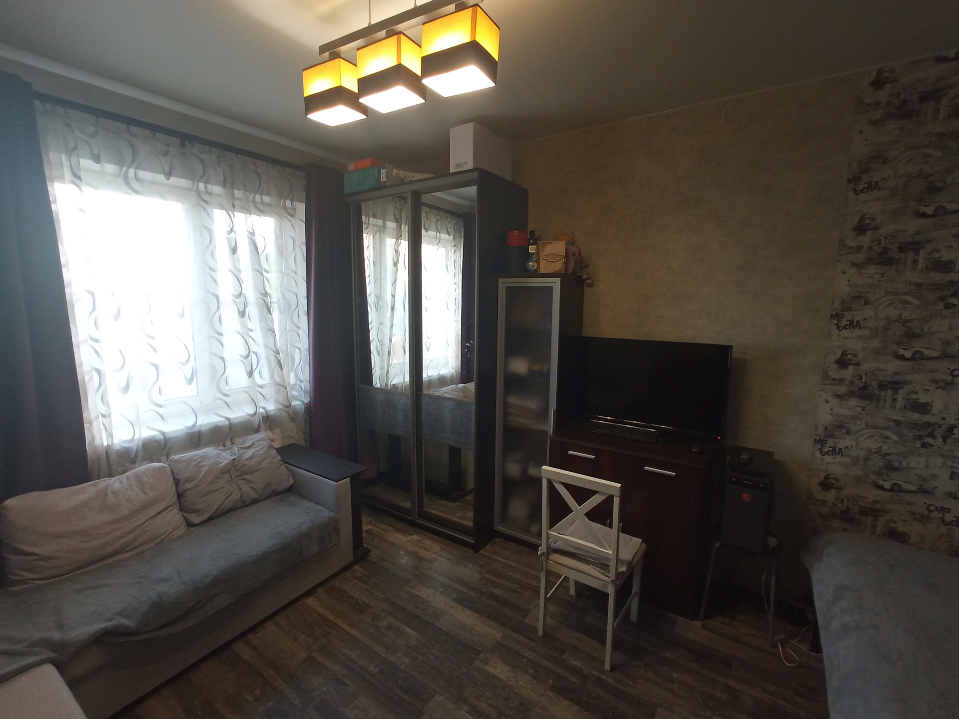 Квартира с ремонтом, мебелью и техникой (с собой заберём только кровать, телевизор и комп). Состояние в целом удовлетворительное: заезжать и жить можно сразу, в течении года минимум может не требовать вложений. Есть нарекания по косметике стен в комнате и общему состоянию межкомнатных дверей.