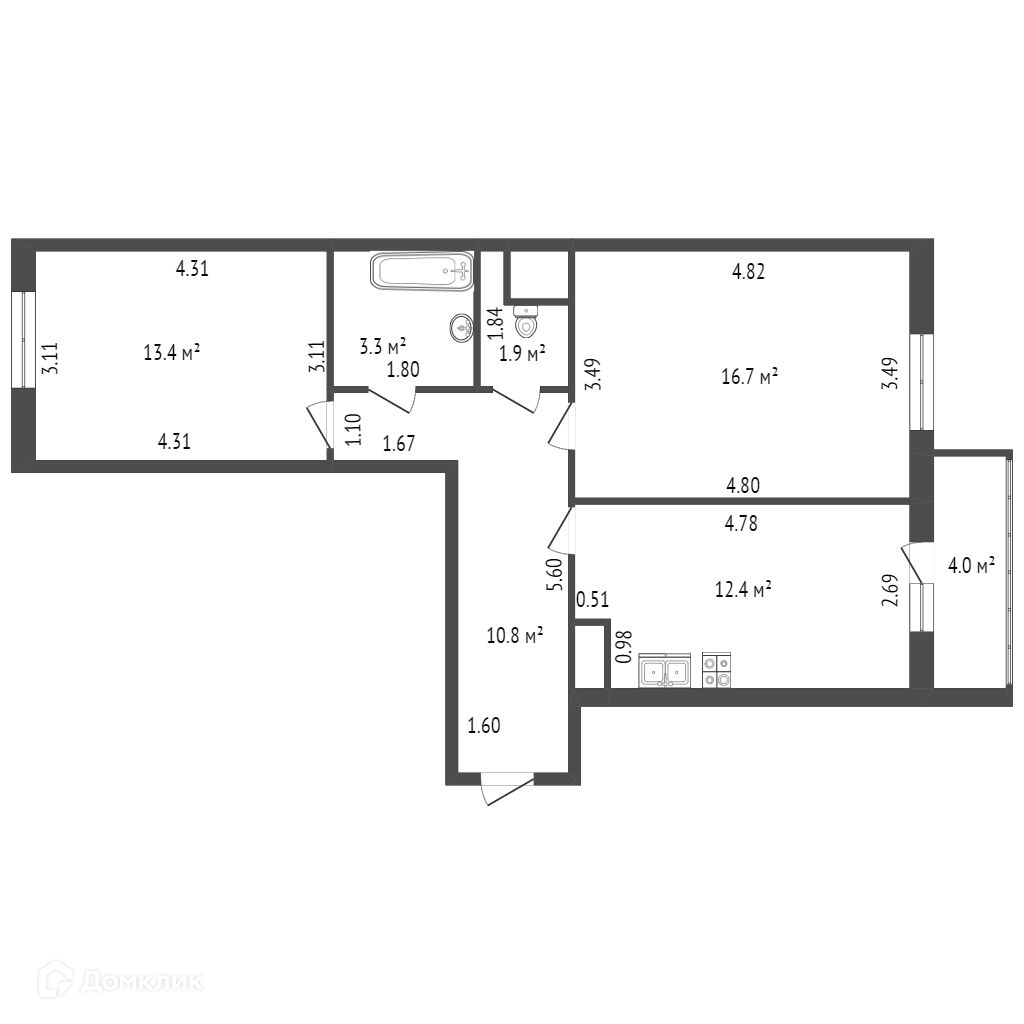 Санузел раздельный: в ванной комнате установлена душевая кабина и сделан теплый пол, в туалете есть компактный рукомойник и гигиенический душ. Просторная кухня 12,4 м2 с выходом на балкон.