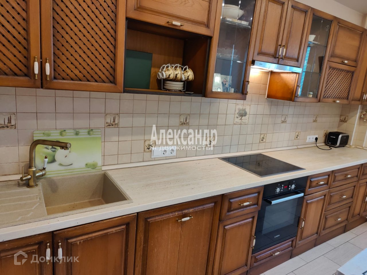 Квартира уютная и теплая. Окна выходят на две стороны, южную и северную, а наличие застеклённого и утеплённого балкона позволяет организовать дополнительное место хранения или отдыха. В квартире раздельный сан узел(в туалете бархатный чёрный потолок), сделан качественный ремонт, на кухне все шкафчики сделаны на заказ из дуба, техника БОШ, двери массив, электрика и сантехника хорошего качества, потолки все натяжные, так же в гостиной по периметру потолка есть цветная подсветка(регулируется с пульта), в кухне так же есть подсветка, всё встроенное остаётся будущему покупателю, остальную мебель можем решить по факту.