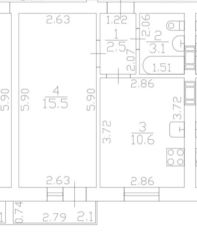 Общая площадь 31.7 м2