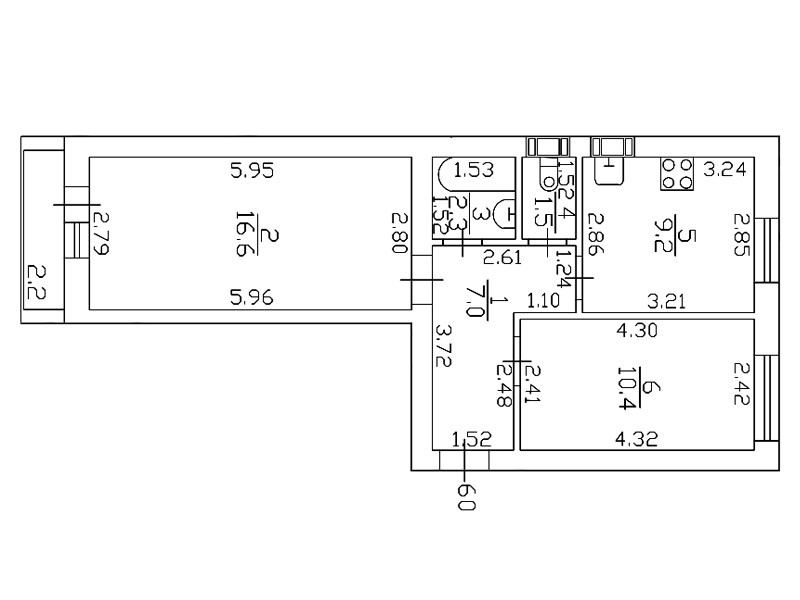 Количество комнат 2