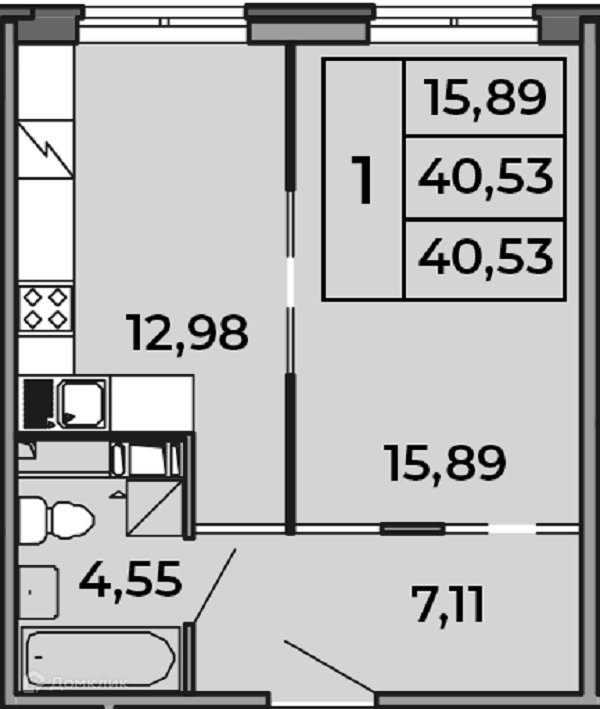 Общая площадь 40.5 м2
