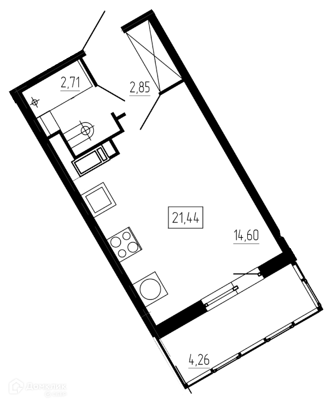 Общая площадь 21.44 м2