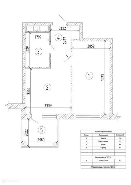 Общая площадь 37.3 м2