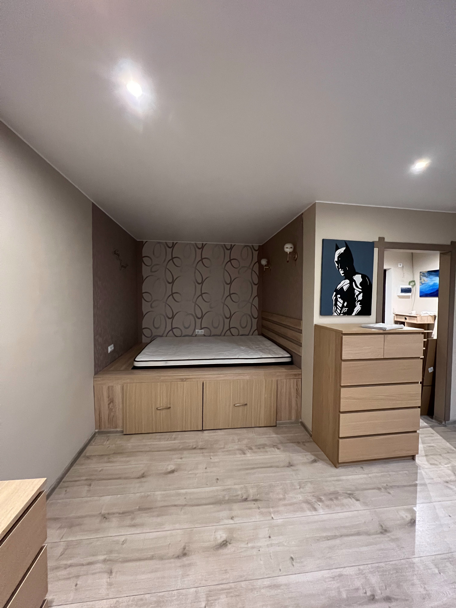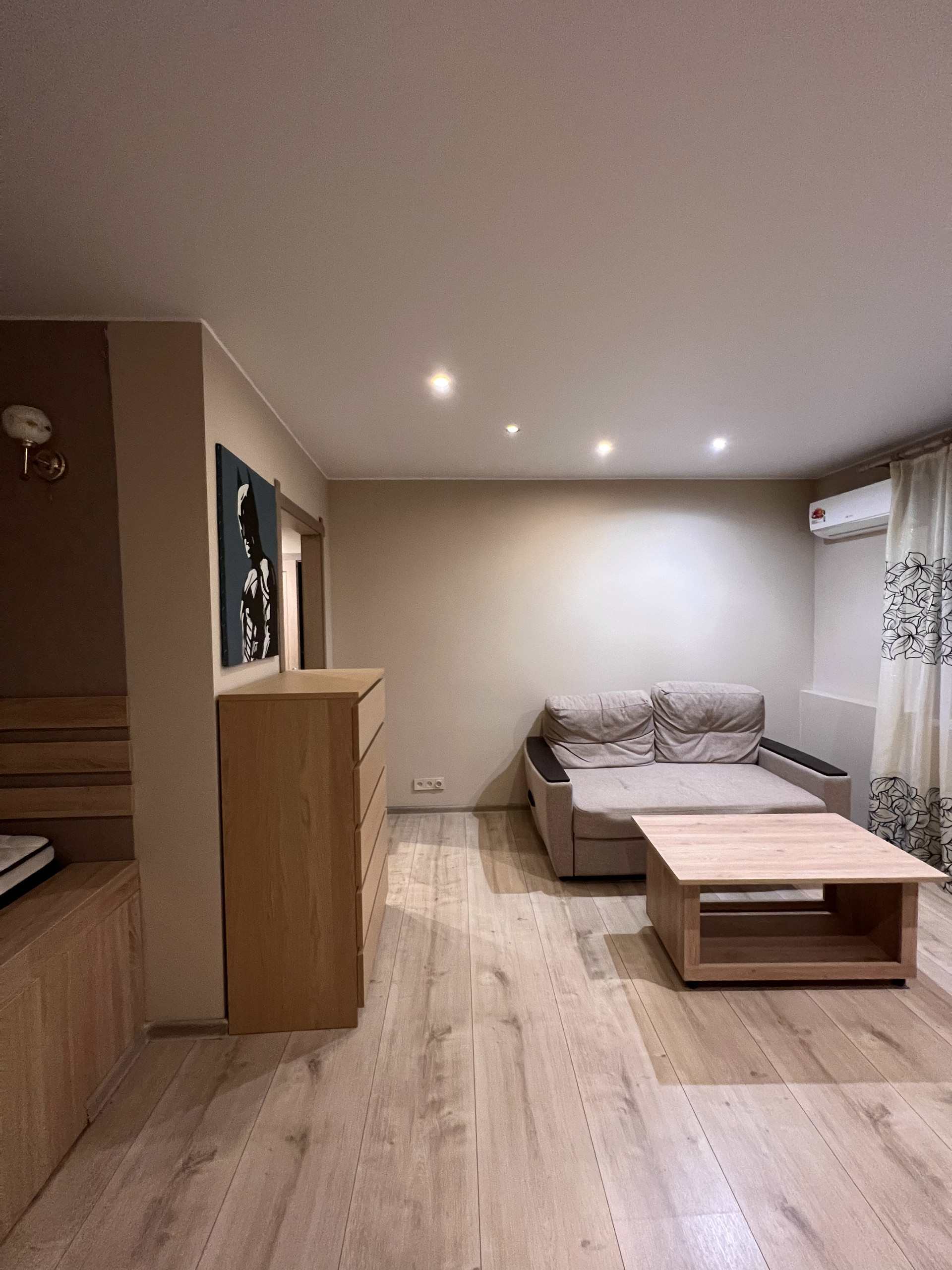 Общая площадь квартиры 39,7 м2. Несколько лет назад выполнен качественный ремонт с обновлением всей сантехники. Комнаты изолированны друг от друга, прекрасная шумоизоляция. В прихожей оборудована гардеробная. Из квартиры открывается потрясающий вид на район, перед окнами нет других домов. В комнате оборудована кровать с зоной для хранения.