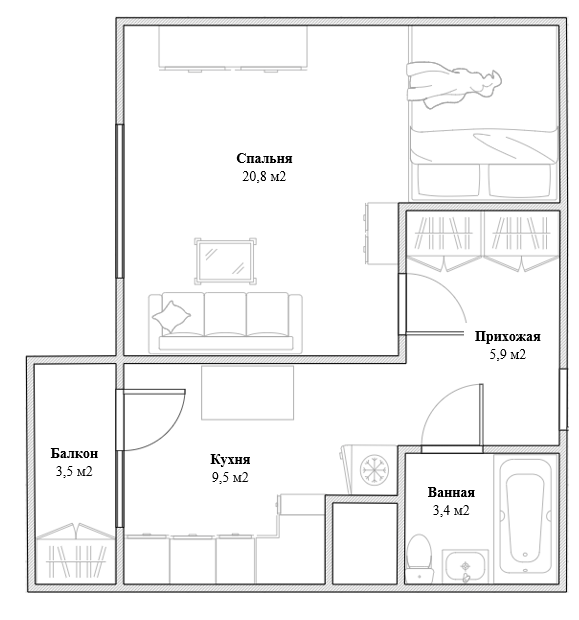 Жилая площадь 20.8 м2