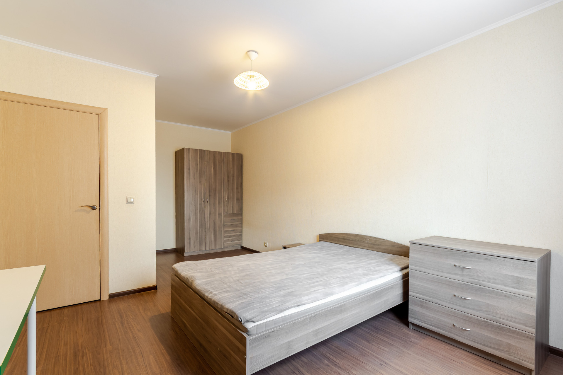 В просторной комнате есть ниша под гардеробную комнату или спальную зону