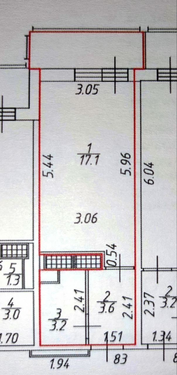 Площадь кухни 3.06 м2