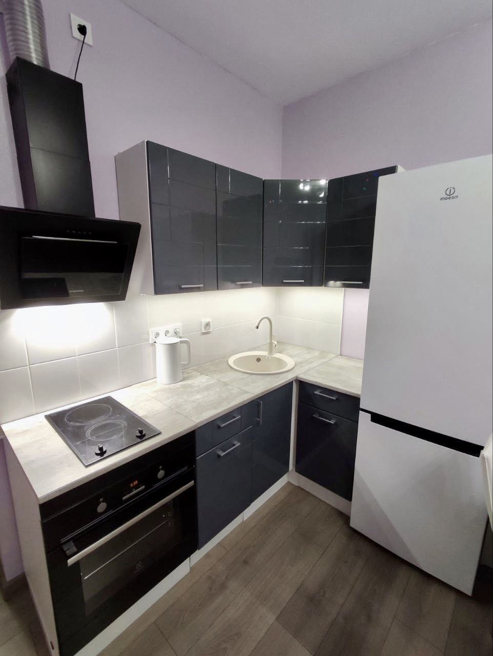 Подсветка в кухонной зоне. Регулируемое отопление.