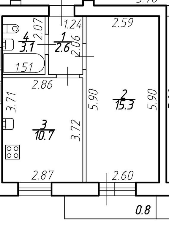 Жилая площадь 15.3 м2