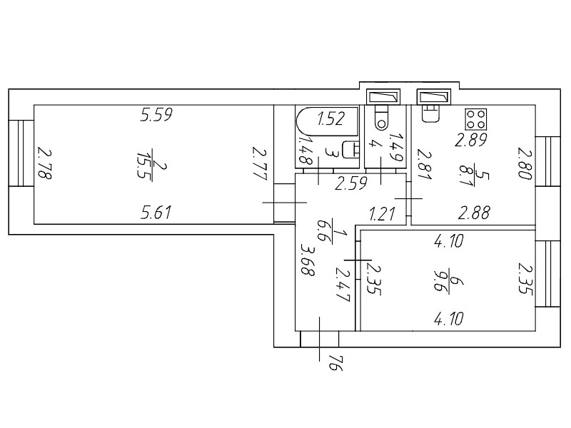 Жилая площадь 15.5 м2
