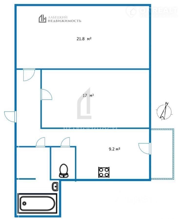 - ДВЕ ИЗОЛИРОВАННЫЕ БОЛЬШИЕ комнаты (21.8м² и 17м²);