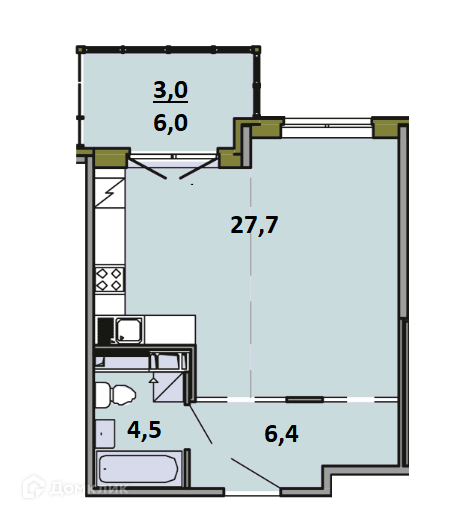 Общая площадь 41.6 м2