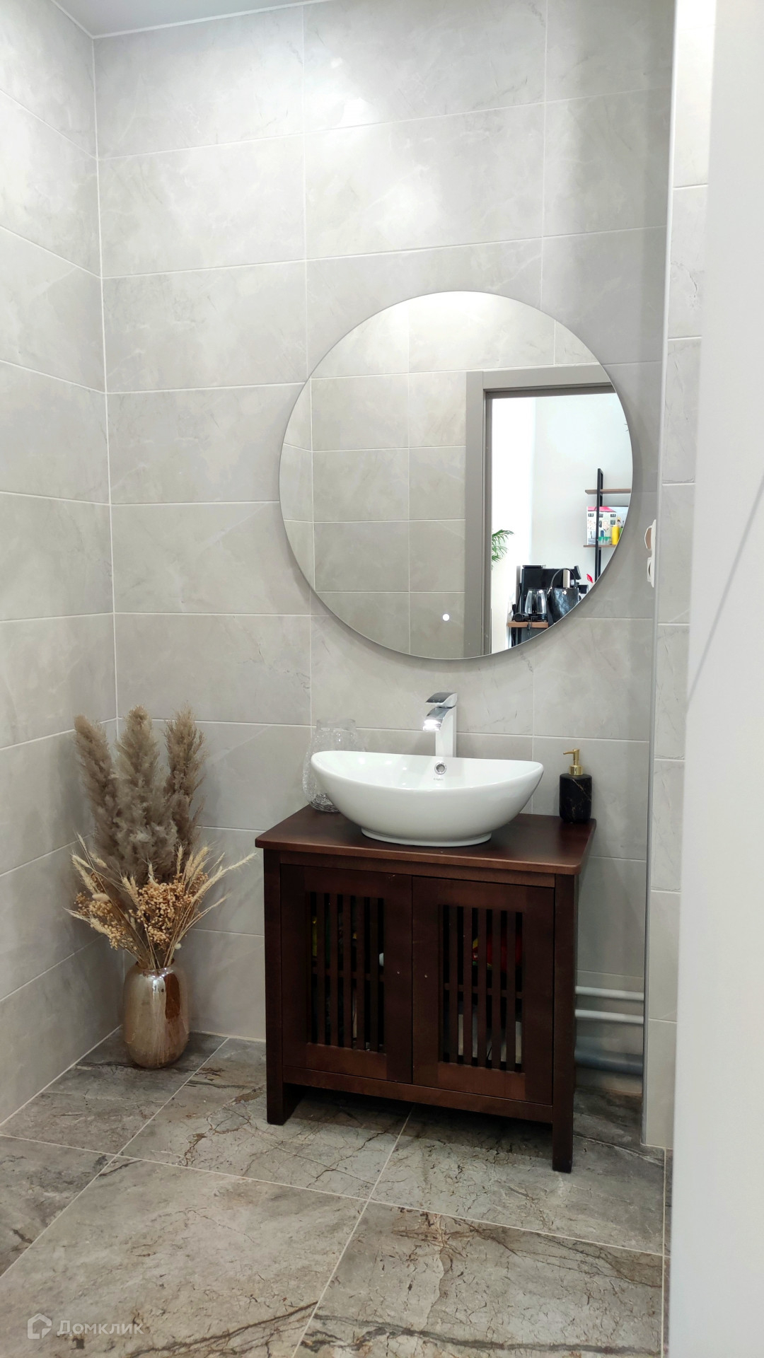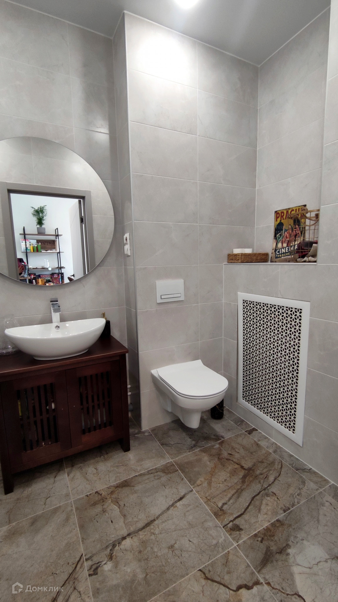 На полу итальянская плитка Сквирел, материал для стен Арт бетон-прослужат долго и будут радовать.