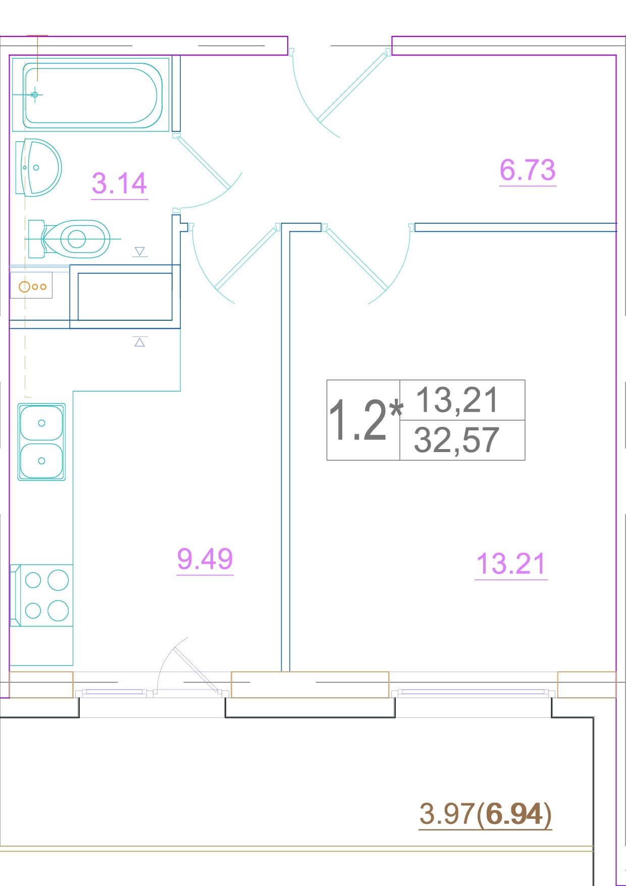 Балкон, лоджия 1 балкон