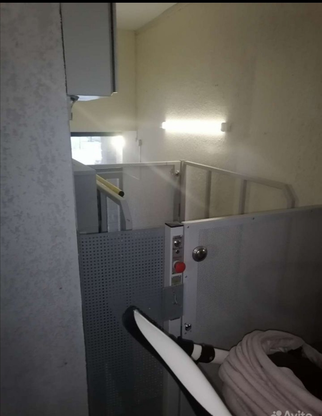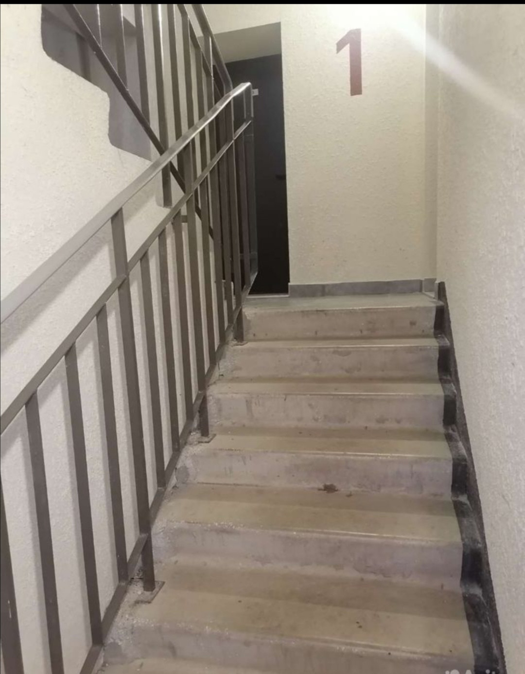 Высокий 1й этаж, почти на уровне 2го. Нужно подняться пол пролета наверх.