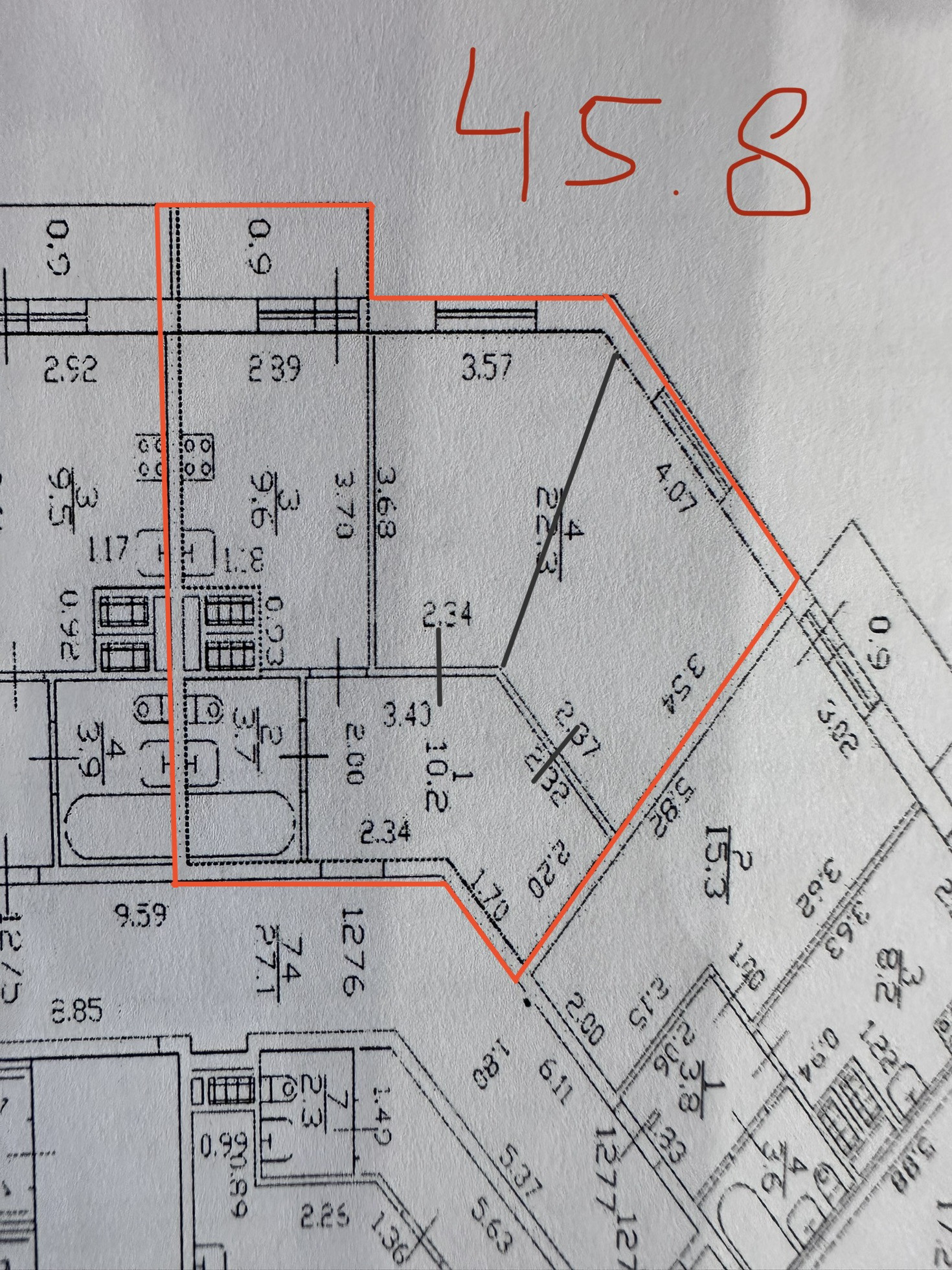 Общая площадь 45.8 м2