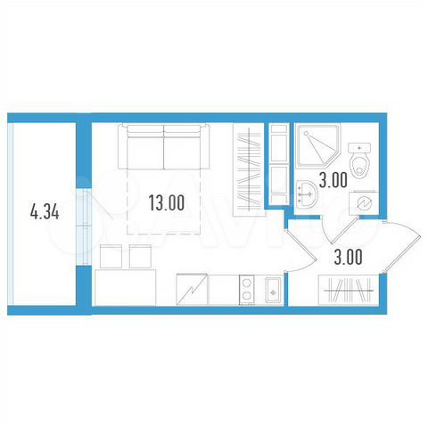 Квартира Студия площадью 20 кв. м на 8 этаже в ЖК AEROCITY 5. Городская прописка, благопритная экология, светлая квартира с увеличенными окнами.