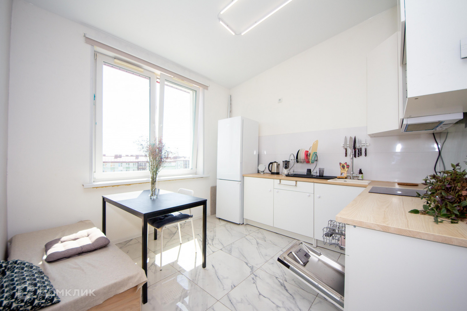 Вся мебель и техника остается как на фотографиях! Техника: стиральная машина, посудомоечная машина, варочная панель, холодильник, вытяжка.