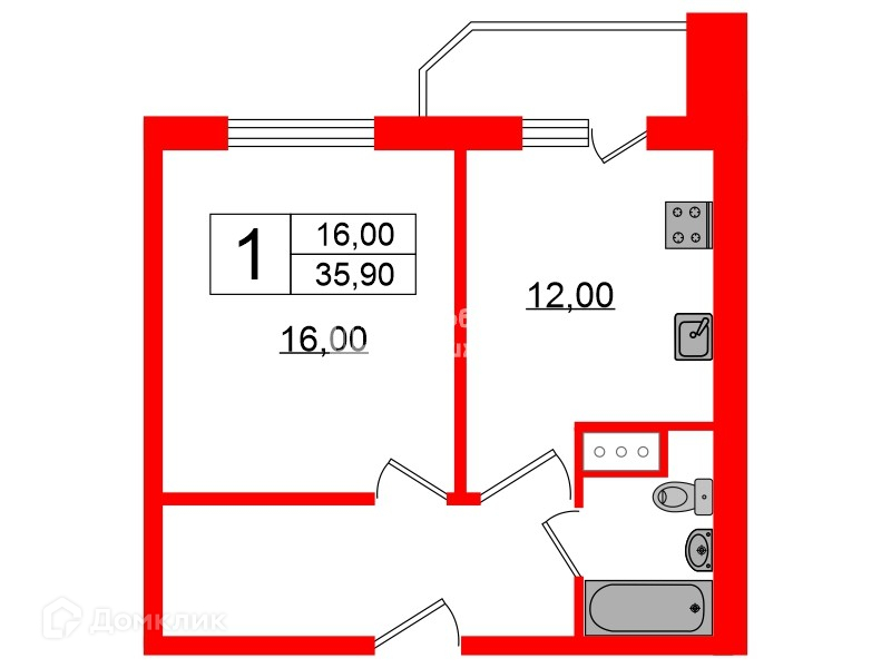 Общая площадь 35.9 м2