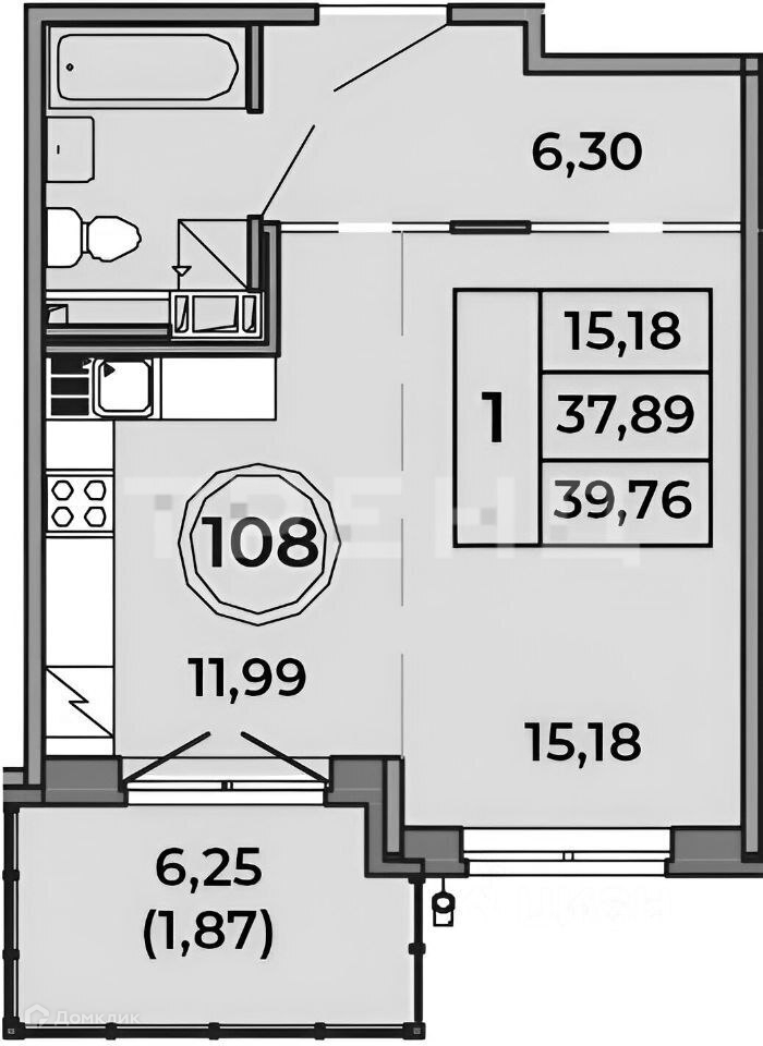 Общая площадь 39.7 м2